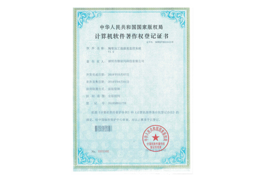 陶瓷加工溫濕度監(jiān)控系統(tǒng)證書
